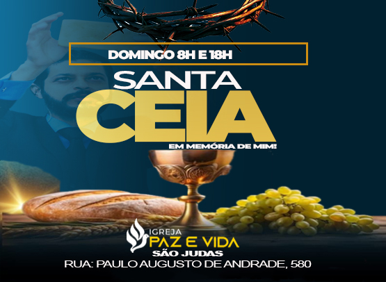 Neste Domingo última Santa Ceia do Senhor, e estaremos celebrando em dois horarios, 8h e 18h, na Igreja Paz e Vida em Taboão da Serra. Venha com toda a sua família e receba às benção do Senhor em sua vida.